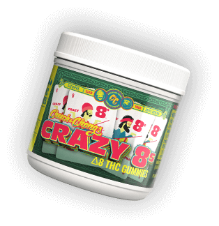 Crazy 8'sGet ready for the strongest legal high of your life. Crazy 8's pack a reality-warping 100mg of pure Delta-8 THC into every perfectly-sized gummy. Crazy 8’s are so potent, they needed a warning label. Trust us when we say - these will get you higher than a kite.